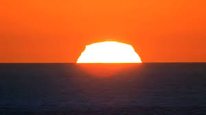 संध्या काल में क्षितिजांचल में समाता हुआ रक्तिम पिताभा मिश्रित सूर्यास्तcaption |