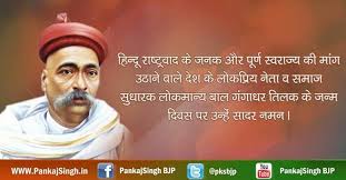 लोकमान्य  बाल  गंगाधर तिलक  भारतीय विभूतियों के आकाश का  वह देदीप्य मान  नक्षत्र  है जो भारत की आने वाली पीढ़ियों को स्वतंत्रता के लिए अपना सर्वस्व बलिदान करने का दिशा बोध कराता  रहेगा। आज २३ जुलाई को इस महान देश -भक्त का भारत की धरा पर अवतरण हुआ था।
