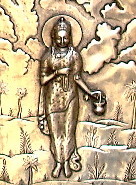 कंचनाभा वराभयं पद्मधरा मुक टोज्जवलां