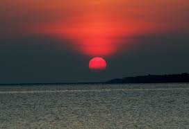 संध्या काल में क्षितिजांचल में समाता हुआ रक्तिम पिताभा मिश्रित सूर्यास्त
